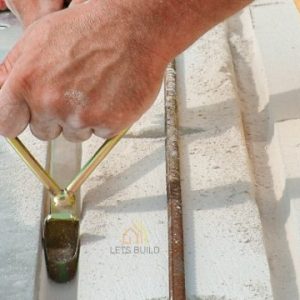 Izmantojot stiegrojumu rievotu tērauda stieņu veidā, bloku slānī jāizveido rievas, kas atbilst stieņa garumam.
