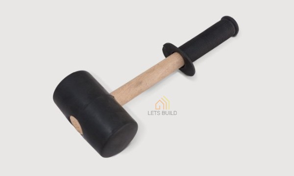 Gumijas āmurs ļauj koriģēt bloku uzstādījumu sienā un nebojā to virsmu.